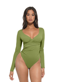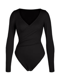 Avec un décolleté en V profond et des manches longues, ce body passe parfaitement du jour à la nuit — associez-le à un jean, un pantalon ou une jupe chic pour un look intemporel et polyvalent. Fini avec une fermeture à pression pratique pour un enfilage facile, c’est la pièce vers laquelle vous reviendrez encore et encore.