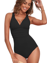 De gerimpelde taille cincht visueel je middel, terwijl de diepe V-hals en dramatische lage ruguitsnijding een silhouet creëren dat zowel ondersteunend als opvallend is. Geen stijve panelen of volumineuze vulling—alleen naadloze compressie die met je meebeweegt.