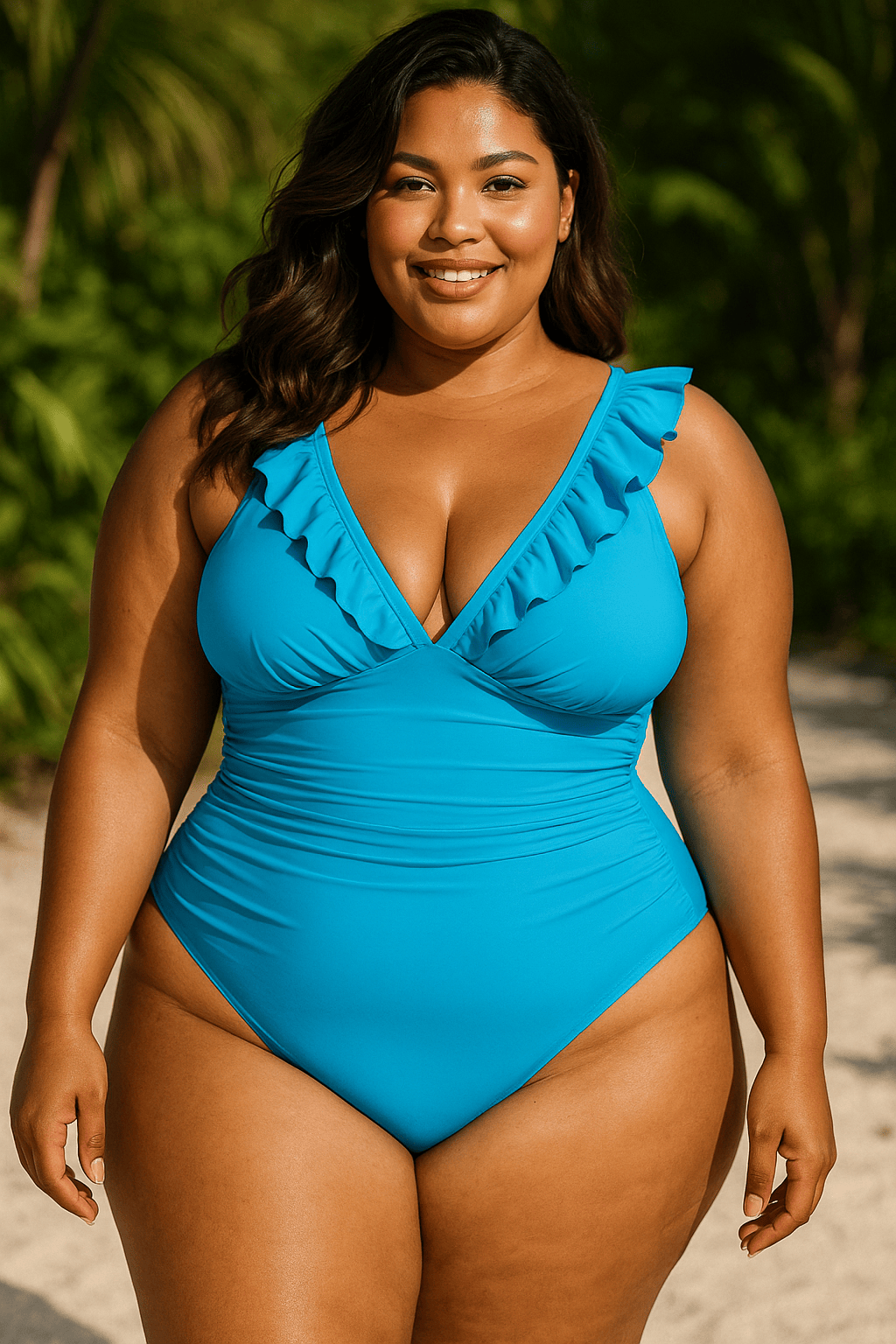 Strategische mesh uitsparingen voegen precies de juiste hoeveelheid edge toe zonder de bedekking te verminderen, en het gelaagde taillebanddetail cincht je middel voor een natuurlijk gevormde look. Met reguliere bedekking aan de onderkant biedt het zowel vertrouwen als comfort voor loungen bij het zwembad of wandelingen langs het strand.