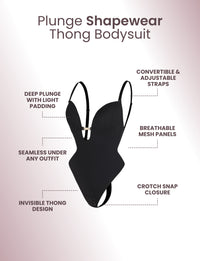 Introducing the Plunge Shapewear Bodysuit, designed for those outfits that demand invisible support and a sculpted silhouette. Perfect under plunging necklines, backless dresses, or wedding gowns, this thong bodysuit shapes, lifts, and smooths without showing.