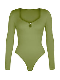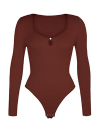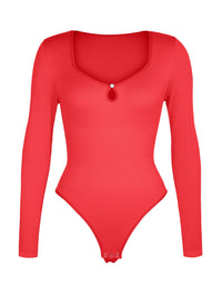 The sexy hollow scoop neckline draws attention to the collarbones, with delicate pearl button accents that add a touch of sophistication. Designed to smooth the waist and abdomen evenly, it hugs your curves while keeping you comfortable all day long.