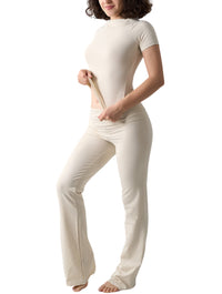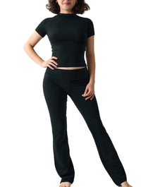 Experience the perfect blend of comfort and style with this two-piece set from our Sets and Packs collection. The short sleeve fitted top and matching stretch pants are cut from HeyShape’s signature fabric for a sculpt and smooth effect with low compression – lightly hugging your curves while keeping you free to move.