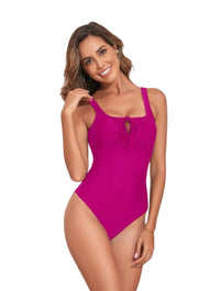 Featuring a graceful scoop neckline, gathered bust, and subtle tie-front keyhole, the design blends timeless elegance with body-sculpting functionality. Crafted from buttery-soft, stretch-infused fabric, it offers built-in tummy smoothing that hugs your curves without squeezing. Wide straps and a full-coverage back ensure comfort, lift, and security all day long—no adjusting required.