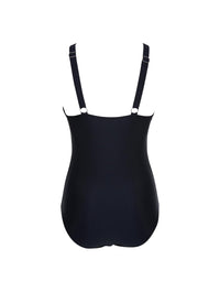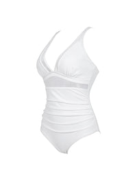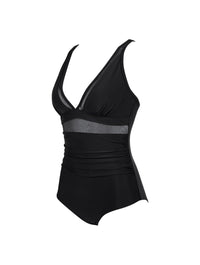 Suunniteltu kääntämään katseet ja kaventamaan vyötäröä, tämä rohkea yksiosainen uimapuku tarjoaa voimakasta muotoilua ja viettelevää tukea. Syvä V-pääntie verkkopaneelilla kohottaa ja kehystää rintasi, kun taas muotoileva korkeavyötäröinen puristus silottaa vatsaa ja korostaa tiimalasivartaloasi.